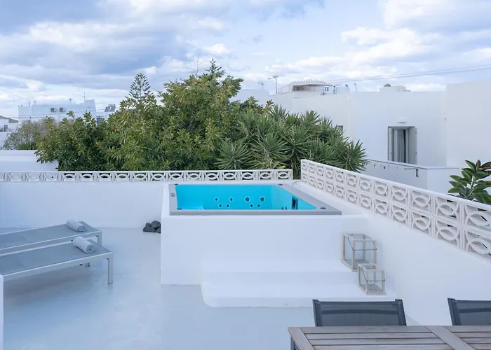 Swell S2 Maisonette With Private Jacuzzi In Naousa靠近Hera's Gallery Shop,设有露台。 在全场有无限网络。 步行6分钟即可到Naousa,住所距离Port of Paros550米。
